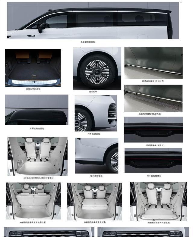 尺寸方面,申报信息显示新车的长宽高分别是5360/1998/1940mm,轴距为3200mm,定位是中大型MPV,座椅方面提供有6座以及8座两种布局。